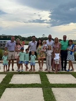 June of 2025: Pictured left to right: Mills, Gordy, Lauren with Baby Annie, Henry, Ford, Woody, George, LT with Mary Abbott, John Jr., Claire, Diana, Charlotte, Poppy and Lolly