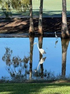 Mary and I got to meet with Robin one afternoon in his home. Such a treat! We each purchased a book for our husbands for Christmas plus I got one for our new neighbors in Naples (one of which also hails from Louisville) who adore birds like we do. My current Florida favorite is the majestic egret. The below pic was taken in our back yard in Naples: